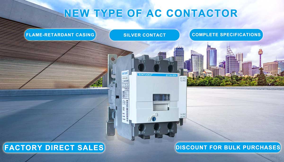 SONTUOEC, çeşitli küçük elektrikli cihazların üretiminde uzmanlaşmış Çinli tedarikçilerden/üreticilerden biridir ST1N Serisi AC Kontaktör, AC motoru yapmak ve kırmak, sık sık başlatmak ve kontrol etmek için 660V AC 50Hz veya 60Hz'e kadar nominal voltajı, 95A'ya kadar nominal akımı devrelerde kullanmaya uygundur. Yardımcı kontak bloğu, zamanlayıcı gecikmesi ve makine kilitleme cihazı vb. ile birleştirildiğinde gecikme kontaktörü, mekanik kilitleme kontaktörü, yıldız-üçgen yolverici haline gelir. Termik röle ile elektromanyetik marş motoruna birleştirilir. Kontaktör IEC 60947-1'e uygun olarak üretilmiştir.