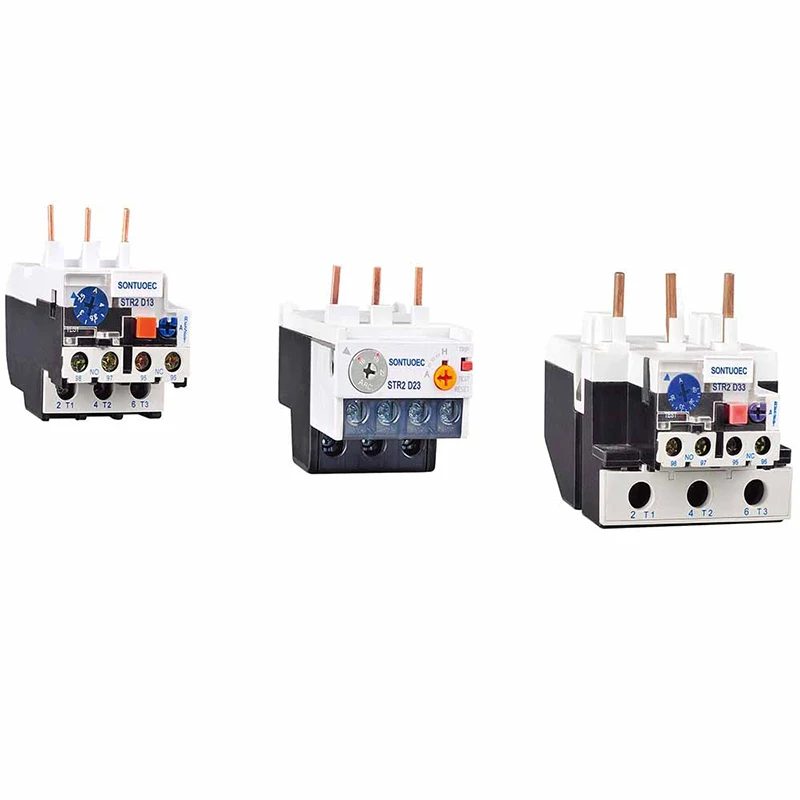 Str2-D33 Termal aşırı yük röleleri elektrik akımının termal etkisi prensibi üzerinde çalışır. Bir motor aşırı yüklendiğinde, akımı artar ve termal aşırı yük rölesi içindeki ısıtma elemanının ısınmasına neden olur. Bu ısı, farklı termal genleşme katsayılarına sahip iki metalden yapılmış bimetal'e aktarılır, böylece ısıtıldığında bükülür. Bükme belirli bir noktaya ulaştığında, genellikle motorla güç kaynağını ayıran ve böylece hasardan koruyan bir kontağı olan mekanik bir cihazı tetikler.